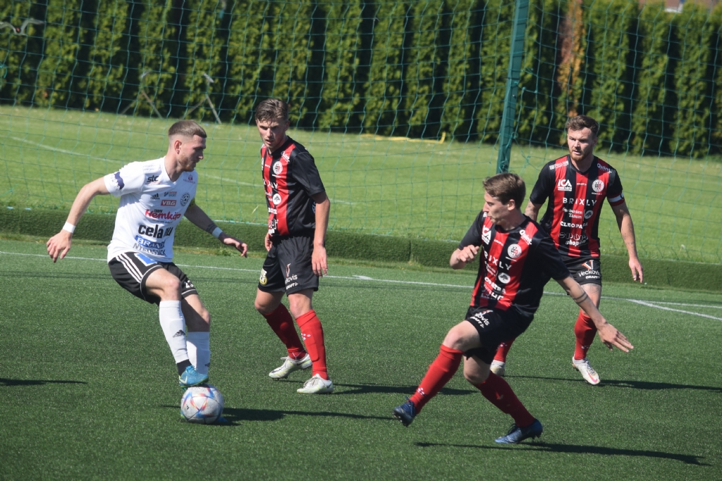 I bilden: 2022-06-04 Vänersborgs FK 1-2 Philip Hällgren Victor Edvardsson William Andersson Vänersvallen
