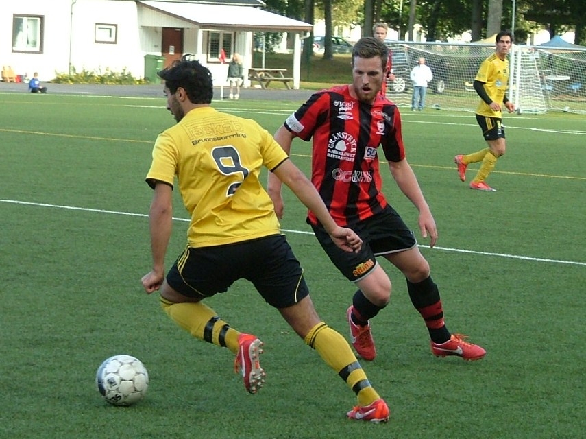 Felix Norén täcker upp och Ahlafors Ali El-Refaei tvingas vända in i planen.