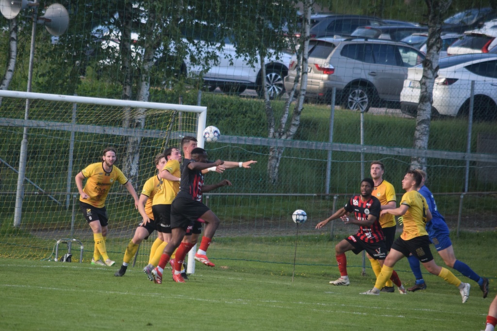 I bilden: 2025-05-28 Ahlafors IF 1-2 Sindre Sakshaug Louis Souffo Ernest Nsengo Svenska Stenhus Arena 1
