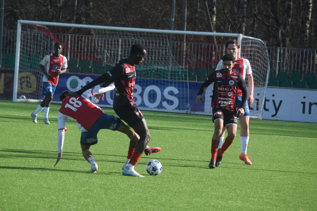 Samba Niakhate täcker bollen och har med sig Ahmed Radi