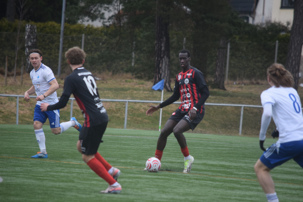 Samba Niakhate söker passning mot Jack Cederlund