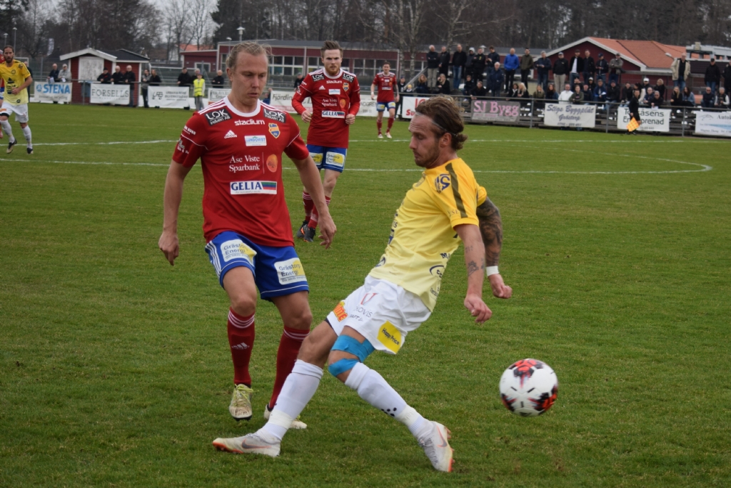 Robin Rundström passar bollen förbi Christoffer Söderlund