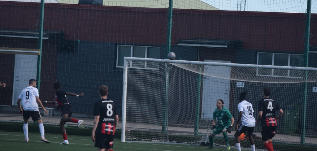 Bildserie, bild 2 av 4 Valon Gashis nick på väg mot mål. Mattias Jansson följer bollbanan och börjar ansats till att slänga sig...