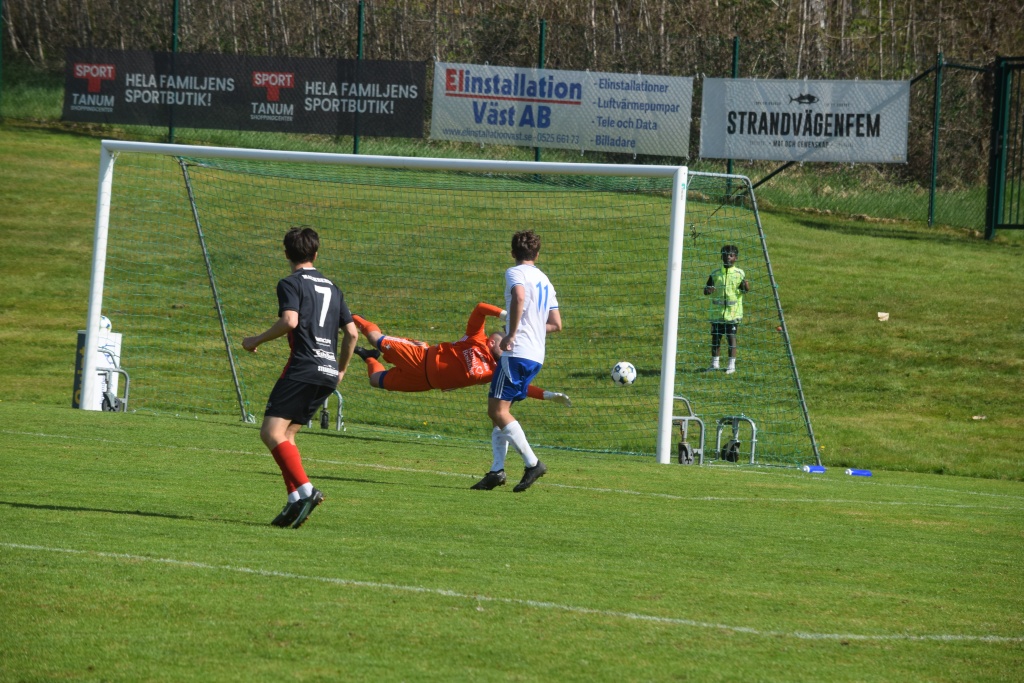 Bildserie, bild 3 av 4 Eldin Bravo tippar bollen i stolpen...