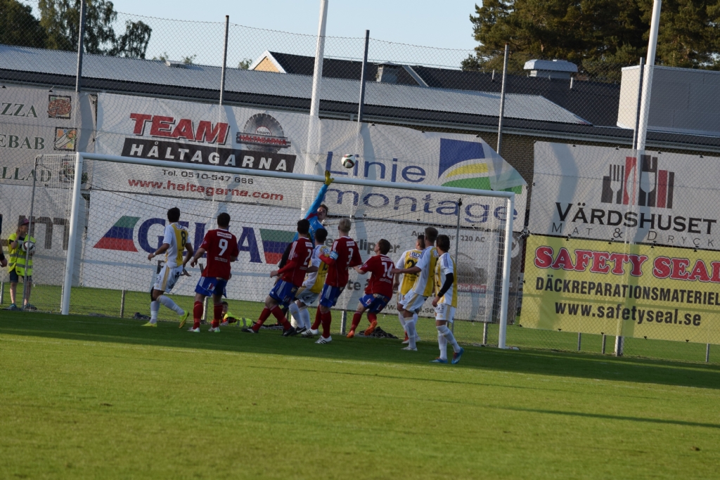 Gauthiod lyfter in en frispark som Jonatan Hårenberg kan ta bort