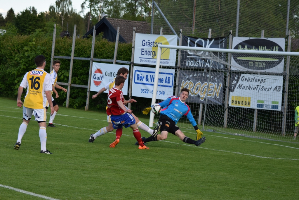 Gauthiods Jonatan Nilsson med ett fint läge men Jonatan Hårenberg kommer ut bra och klarar