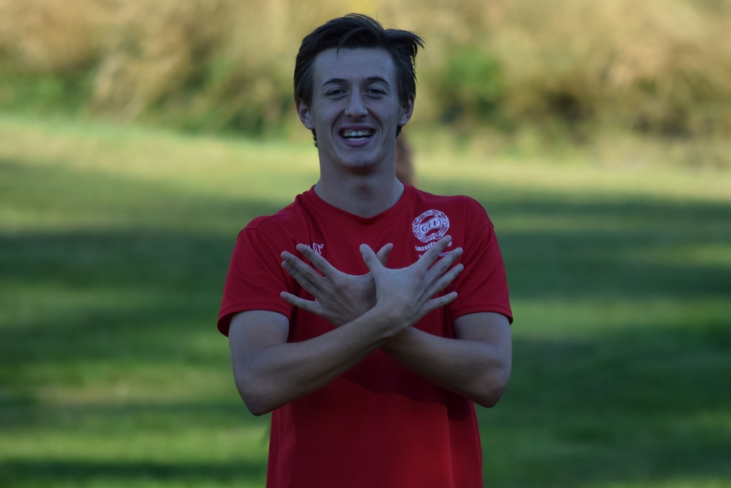 Leonard Pllana var glad under uppvärmningen inför matchen