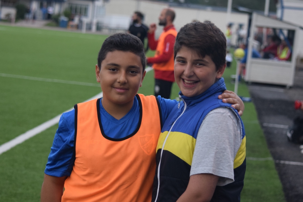 Bollkallen (till vänster) och hans kompis ville vara med på bild